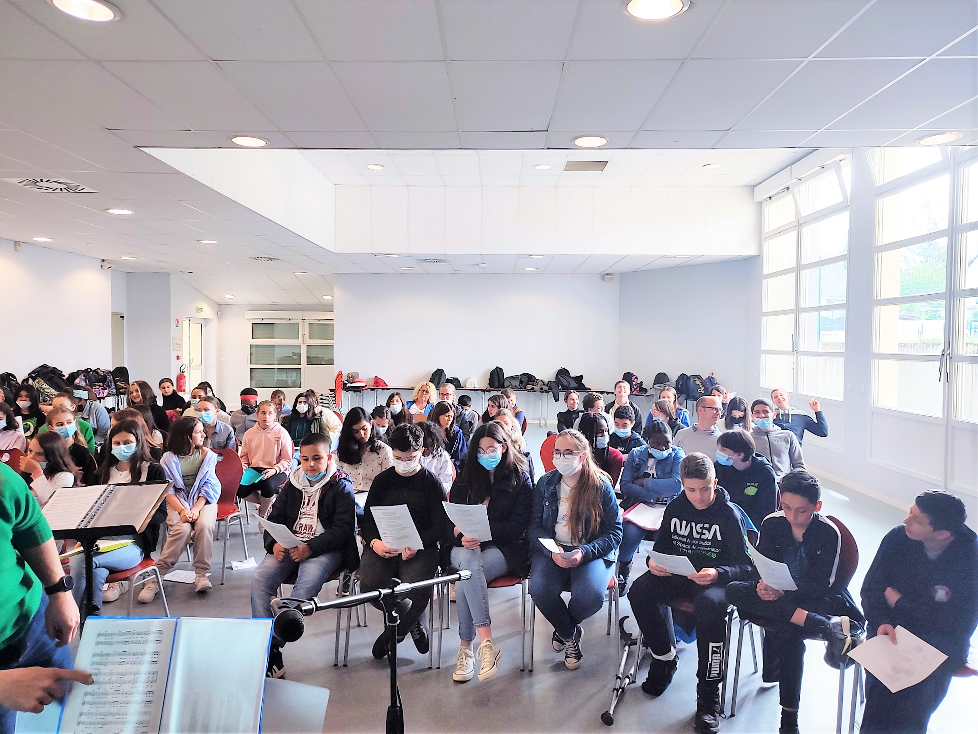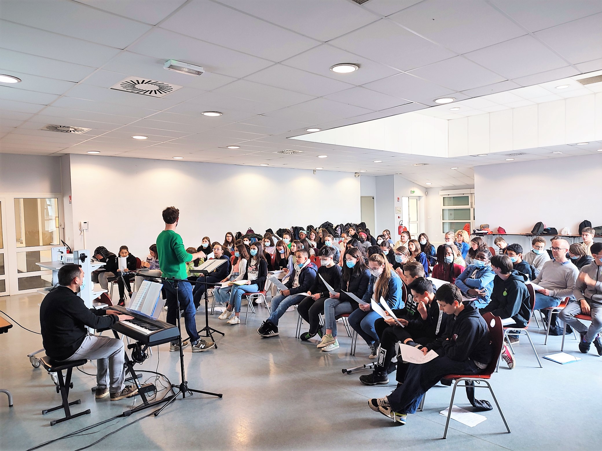Près de 70 choristes se sont retrouvés vendredi 29 avril au collège pour leur première répétition générale. Les élèves de la chorale de M. Hublet bien-sûr, mais aussi ceux de Mme Lebert du Collège du Chinchon de Montargis, ainsi que les élèves de la chorale du Collège Auguste Renoir de Ferrières en Gâtinais, dirigée par M. Virault. Une journée studieuse et musicale, consacrée à la mise en place du programme commun aux trois collèges sur le thème de l'amitié.